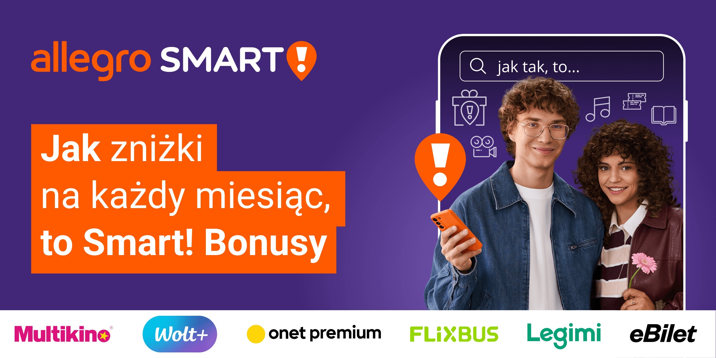Startowi kampanii towarzyszy wprowadzenie nowych Smart! Bonusów. Nowością jest promocja na pakiet Onet Premium, czyli nieograniczony dostęp do treści dziennikarskich i podcastów w promocyjnej cenie 9,90 zł przez pierwsze trzy miesiące. Ofertę dla smartowiczów przygotowała również platforma szybkich dostaw jedzenia i zakupów Wolt - subskrybenci Allegro Smart! otrzymują rok dostaw za 0 złotych z Wolt+.